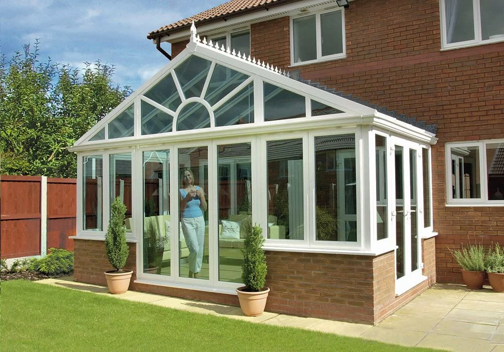 Gable conservatories offer excellent design inspiration especially if noted the sunburst/sun rising style front. For bungalows and other height-restricted situations, a hipped-back roof with a box gutter is normally supplied.